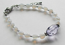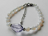 タンザナイトの透明感と、ハートの乳白色の組み合せが涼し気な印象です。夏の間、たくさん楽しんだ冷たい飲物のよう。