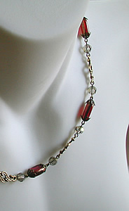 きれいなルビー色のオーバルビーズ。 側面にブロンズのコーティングがされています。 どことなくクラシカルな雰囲気。 ちょっとドレスアップして、街に出かけてみませんか?